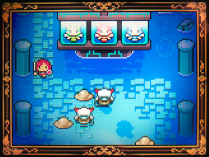 Det känns bärbart ut i fingerspetsarna, som ett uppskalat Game Boy Color-spel vars gigantiska pixlar kan göras än större om man väljer att zooma in vyn som för övrigt är inramad på klassiskt Ys-vis.