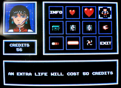 Plötsligt snubblar man över en butik där det säljs lite av varje. Alternativa vapen, hälsa, ammunition, extraliv, tips och en drake av eld.